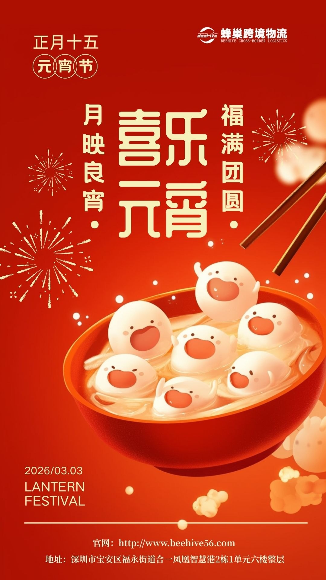 元宵到!|蜂巢跨境物流祝大家:左手汤圆(圆满)右手元宝(财富)2026  圆圆满满  财源滚滚!